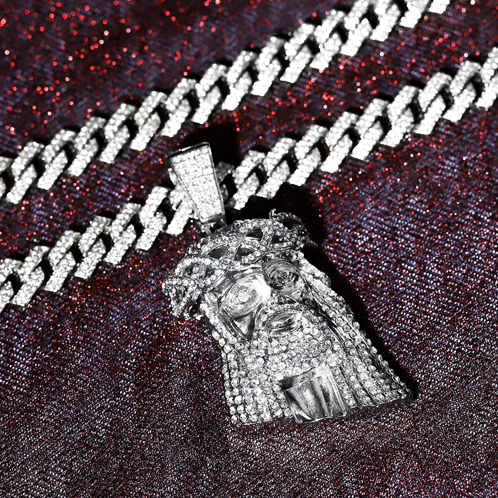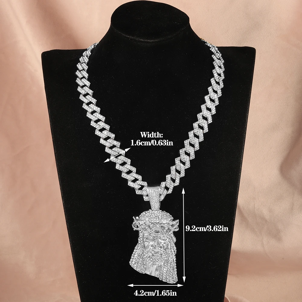 Men/Women Jesus Pendant Necklace Stylish Iced Out Full Inlaid Diamonds Cuban Chain+ Large Pendant Jewelry Gift