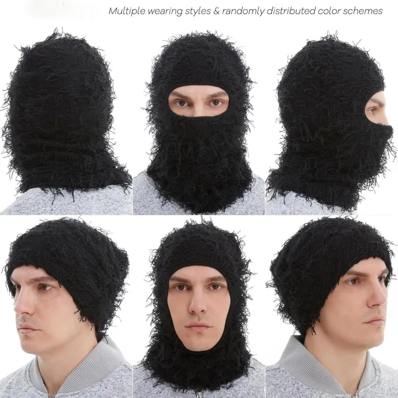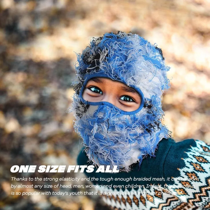 Y2k Distressed Ski Mask, Full Face Knitted Balaclava Windproof Cool Ski Mask for Cold Weather, Camo Knitted Face Mask